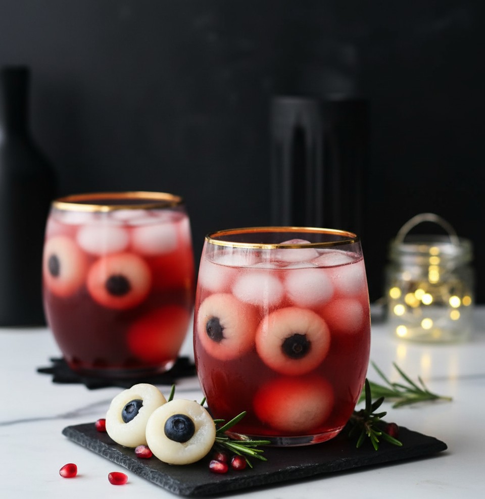 Dacă vrei să impresionezi invitații, Eyeball & Hand Fruit Punch e băutura care transformă masa de Halloween într-un spectacol. Este mocktailul care pare desprins dintr-un laborator de filme horror, dar are un gust dulce și fructat pe care îl adoră toată lumea.